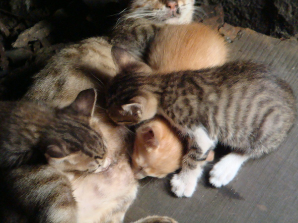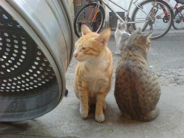 奶奶家的貓咪...剛出身沒多久還小小隻的... 依偎在大母貓的身旁喝ㄋㄟ ㄋㄟ.... 一年過去了.... 貓咪們,變得跟豬一樣... 你看他們的屁屁= =+ 圓滾滾的... 那隻白色是今年來的朋友...本來是野貓...後來餵她吃... 它就變成家裡的一份子... 只是他很貪吃會搶別人的食物... 這時候老媽的如來神掌一揮,就乖乖的坐在地上一動也不動.... 至於其中一隻呢...她懷孕了...@0@不在以下照片裡...